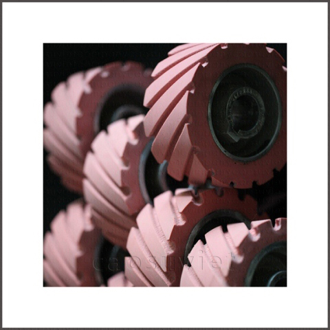 Con lăn cao su đè gỗ được cắt rãnh để kéo chuyển phôi, ván gỗ từ công đoạn nhập liệu đến khâu sản xuất. Vật liệu cao su được chọn để làm sản phẩm này là cao su nhân tạo hay cao su tổng hợp với độ đàn hồi và mài mòn tốt
